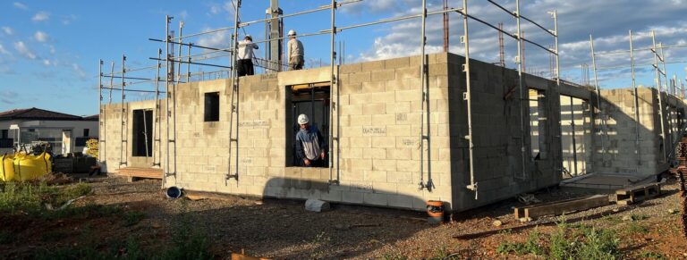 Villa en construction à Garons : maçonnerie en cours sur le gros œuvre.